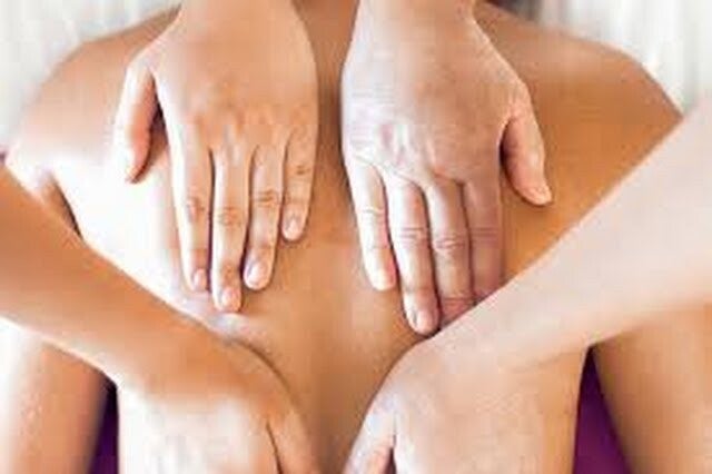 Modelage relaxant enveloppant et doux du cuir chevelu jusqu'à la pointe des pieds effectué à 4 mains.